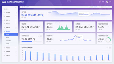 本系統(tǒng)首頁主要是核心數(shù)據(jù)的總覽和展示,經(jīng)過與客戶討論,首頁主要顯示“資產(chǎn)”“負(fù)債”“現(xiàn)金流”等方面的內(nèi)容。在確定展示內(nèi)容之后,藍(lán)藍(lán)設(shè)計(jì)嘗試將行業(yè)特色和產(chǎn)品結(jié)合,運(yùn)用情景化的設(shè)計(jì),把行業(yè)“風(fēng)機(jī)”融入進(jìn)首頁中來,同時(shí)深色的背景和多種元素的組合,也把科技感體現(xiàn)了出來。