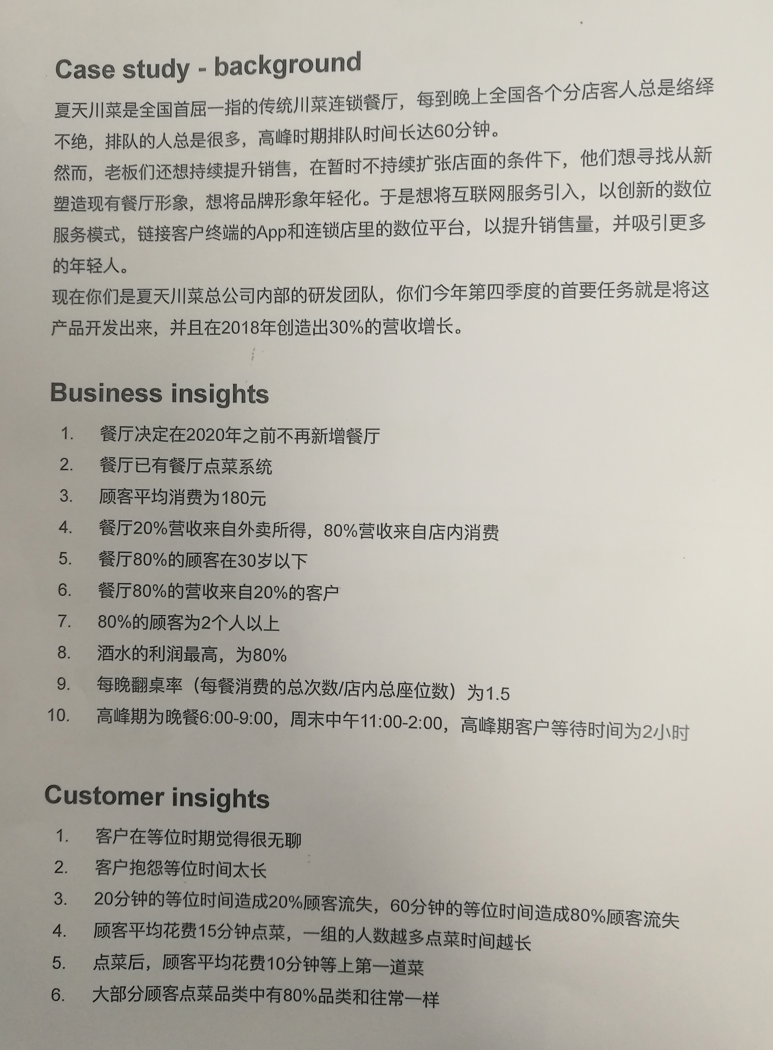1第一步 老師發(fā)給我們一張紙,講了一個川菜館目前的情況,一些困難,想達到的目標。讓我們先了解現(xiàn)狀和期望。