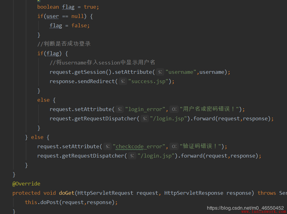 如下圖所示,為了保證servlet層能夠正確接收到界面所展示的驗(yàn)證碼信息,同時(shí)因?yàn)閟ession對象是項(xiàng)目自生成的,所以我直接獲取session對象并以類似于鍵值對的形式將頁面驗(yàn)證碼信息存入session中。