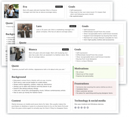 按照我們的邏輯順序,首先是創(chuàng)建角色。我們幾乎在所有項目中都會使用。基于我們的產(chǎn)品或服務(wù)的目標群體,即不同的潛在客戶,構(gòu)建虛構(gòu)人物個性。這個工具可以讓我們更多地了解客戶的需求、問題、動機和行為。我們通過研討會、頭腦風暴或通過定性和定量研究“簡單地”收集盡可能多的數(shù)據(jù)來實現(xiàn)這一目標。