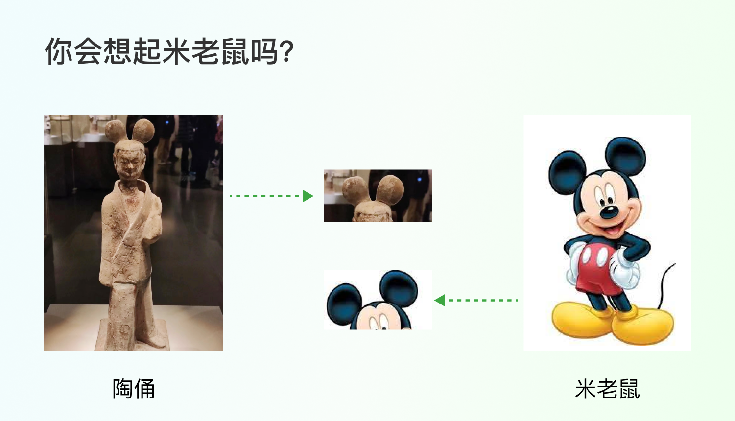 這就是心智模型,你對(duì)頭頂?shù)拇髨A形的心智是“米老鼠”,所以一旦你看到類似的形狀,米老鼠的形象就會(huì)浮現(xiàn)出來(lái),這個(gè)發(fā)髻的形狀和你心里對(duì)米老鼠的形象產(chǎn)生了匹配。