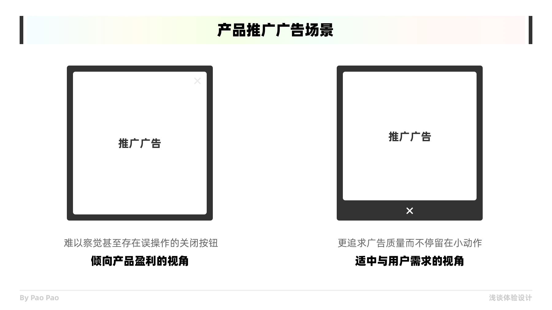 一直以來在產(chǎn)品營銷廣告中,始終存在一些流氓的交互方式讓用戶苦惱。往往更加注重和尊重用戶感受可以更好的提升用戶的好感與使用體驗,這便能夠使產(chǎn)品與用戶之間的感情升溫贏得口碑。