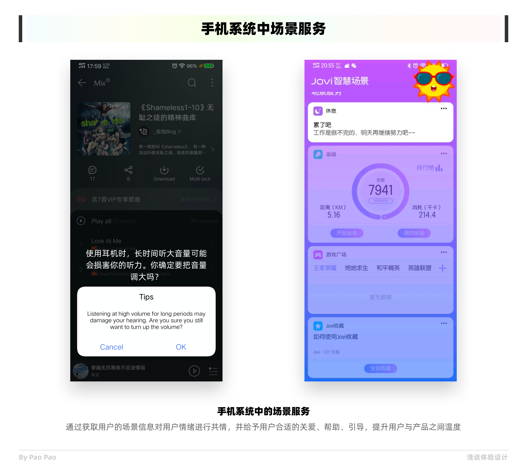 三、情感關(guān)注型:有一些屬于情感關(guān)注類型的共情設(shè)計,通過獲取用戶的場景信息或其他數(shù)據(jù)共情用戶情緒,并給予用戶合適的關(guān)愛、幫助、引導(dǎo)。為用戶帶來軟件有情感,品牌有溫度的體驗;