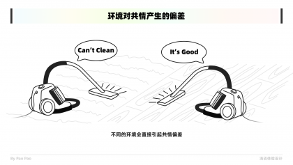 在體驗設(shè)計的過程中,我們需要與目標對象構(gòu)建共情時,一定是有目的有意圖的。以使用性測試為例,往往我們都會設(shè)定一些產(chǎn)品測試任務(wù)和目標給用戶,再進行觀察和共情。這也將允許我們能夠在同一個或相似的場景事件中發(fā)生共情,這樣才能夠獲取到更真實有效的共情。以一個吸塵器產(chǎn)品為例,如果對方是在地毯上測試的,而你是在木質(zhì)地板的環(huán)境下去共情的,那么共情結(jié)果肯定是有所出入的。所以構(gòu)建一個共情目的甚至是環(huán)境是有效共情的一個重點之一。