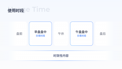 股票交易時段有固定的交易周期,包括盤前/早盤盤中/午休/午盤盤中/盤后幾個固定時段,不同時段用戶需求不同,了解不同時段的用戶需求可以更好的滿足用戶,比如開盤過程中用戶想看到更實時更專業(yè)的行情信息、實時的資訊動態(tài),而在盤前/盤后用戶更想看到的是今日大盤的走勢預測/收盤后的大盤總結(jié),除了固定周期的用戶需求,突發(fā)的新聞資訊類時效性內(nèi)容對用戶做決策分析也很重要。