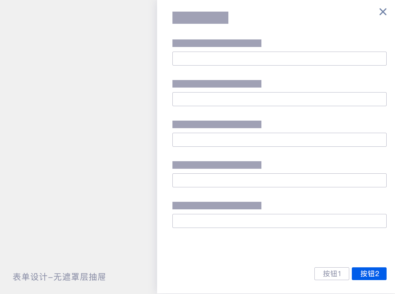 抽屜形式的表單展示方式是從屏幕右側(cè)彈出,有時候也會有從底部彈出的情況。這里主要分享從右側(cè)彈出的抽屜表單模式,抽屜模式還分為三種模式:有遮罩層的抽屜模式、無遮罩層的抽屜模式、擠壓模式。
