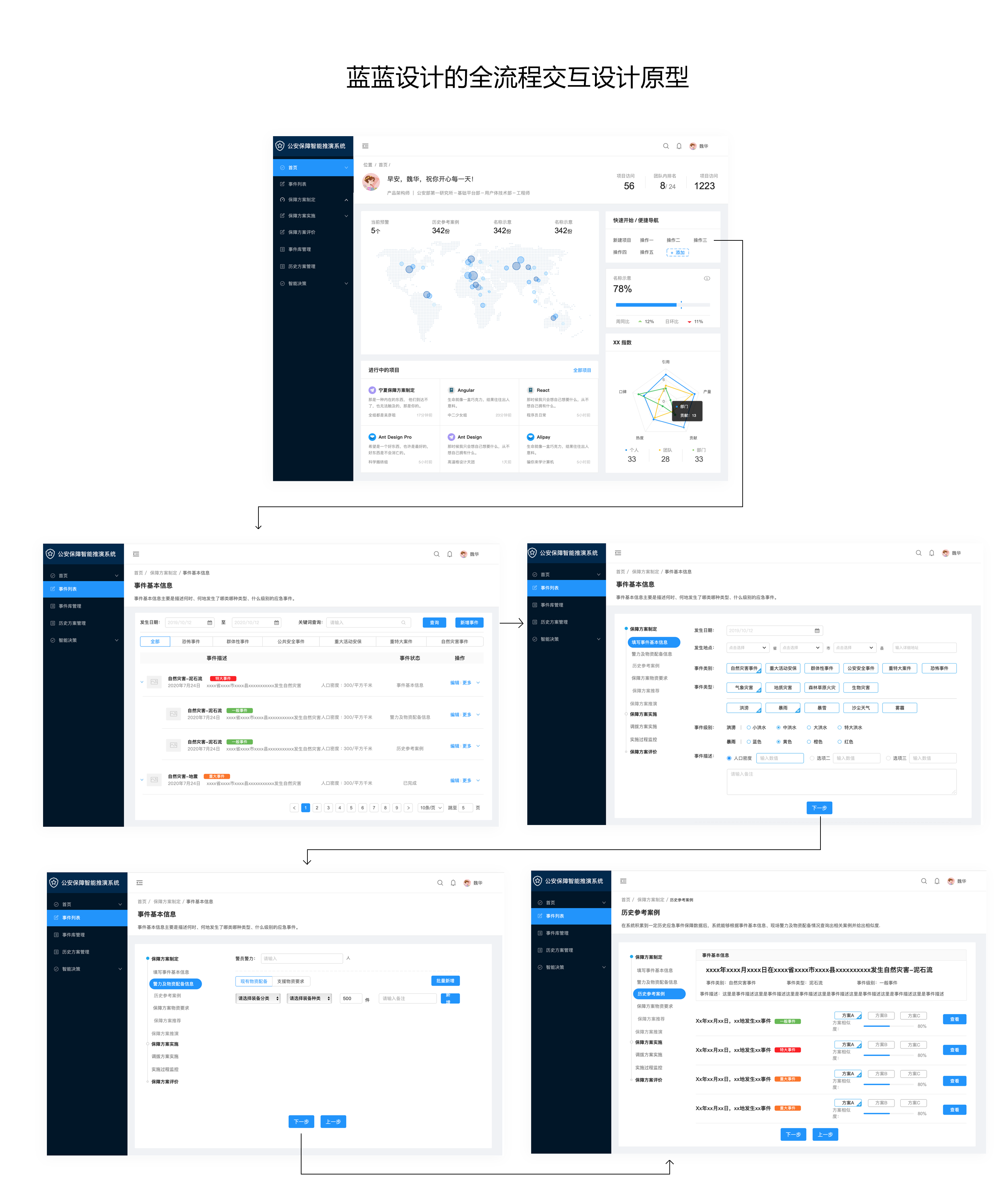 在初步的用戶研究后,設(shè)計(jì)會(huì)先輸出完成所有工作任務(wù)的頁面交互的低保真原型。在后續(xù)的交互設(shè)計(jì)中還會(huì)持續(xù)融入用戶反饋,不斷打磨頁面交互原型,以實(shí)現(xiàn)更好的交互友好性和可用性。