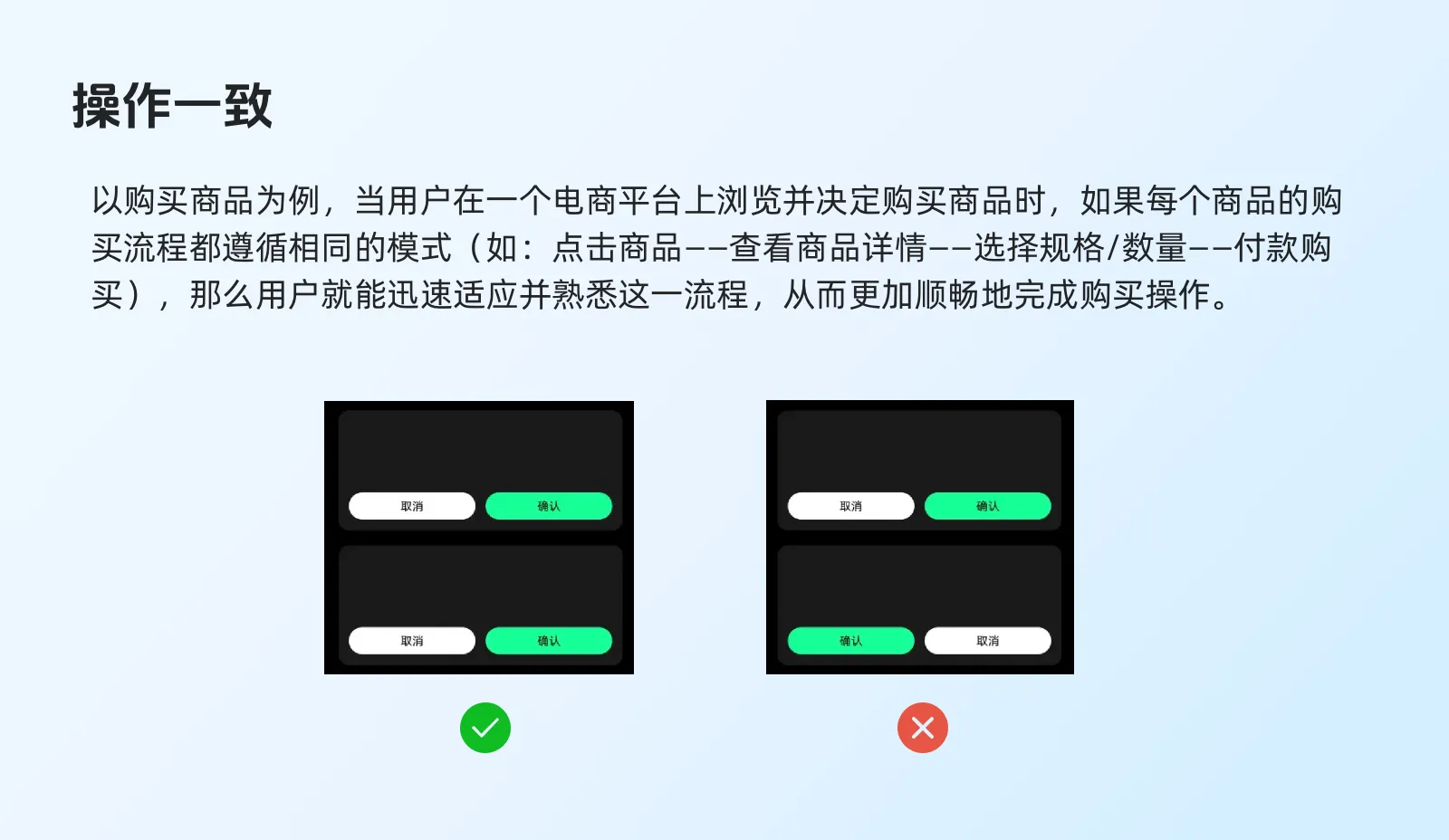 在UI/UX設(shè)計中,雅各布·尼爾森的十條可用性原則中,一致性(Consistency and standards)位列第四。這一原則強調(diào)在界面和交互設(shè)計上需要遵循既定的規(guī)則,無論是在應(yīng)用內(nèi)部還是跨平臺之間。背后的心理學(xué)原理——重復(fù)定律,強調(diào)了信息重復(fù)對于鞏固記憶的重要性。正如赫爾曼·艾賓浩斯通過“遺忘曲線”所揭示的,信息的有效保留離不開重復(fù)接觸。一致性的應(yīng)用正是這一原理的生動實踐,通過不斷重復(fù)統(tǒng)一的設(shè)計元素與模式,強化用戶對產(chǎn)品的認知與記憶,從而提升整體的用戶滿意度與忠誠度。