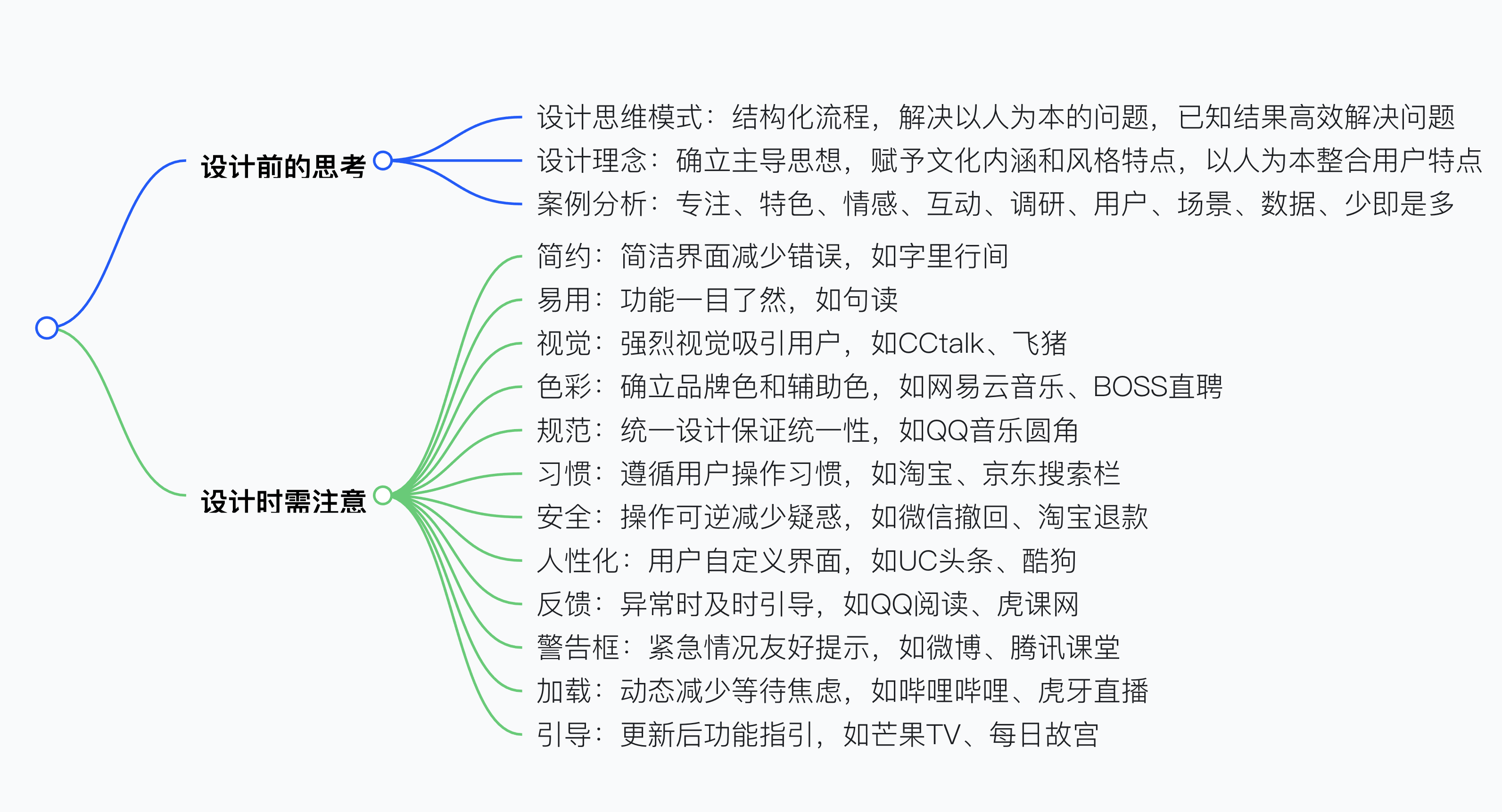 設計的最終目的是提高生活質量,設計前需思考設計思維模式(結構化解決以人為本的問題)、設計理念(以人為本確立主導思想),并進行案例分析(如百度網盤專注功能、每日故宮突出特色等 9 點);設計時要注意簡約(減少認知成本)、易用(功能一目了然)、視覺(抓住用戶眼球)等 12 點,涵蓋色彩、規(guī)范、習慣等方面,這些思考能提升設計效率與用戶體驗。