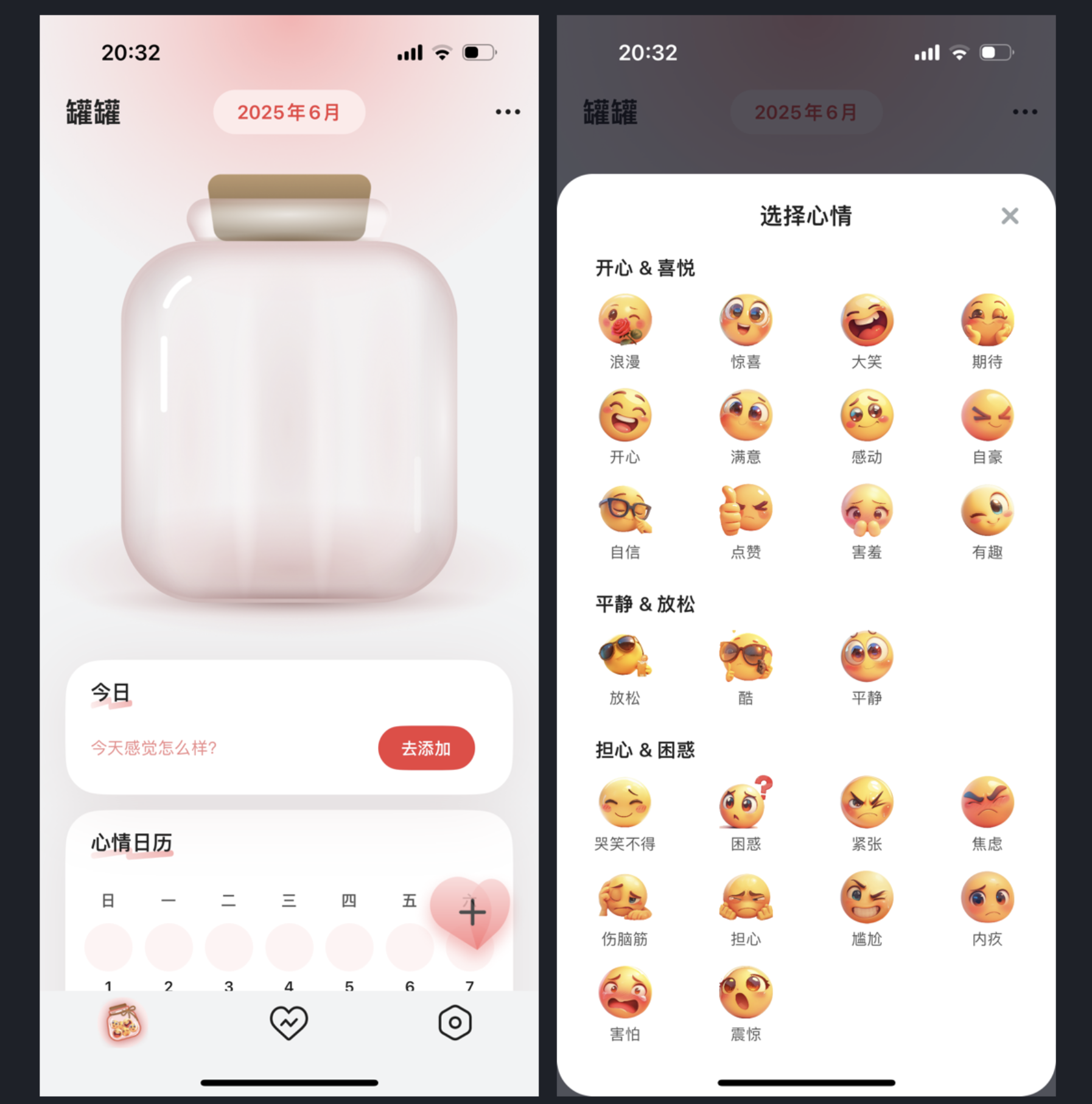 心情罐罐 App 設(shè)計(jì)獨(dú)特,用戶可通過(guò)不同表情記錄每日心情并放入 “罐罐”,如同收納幸運(yùn)星。該 App 在設(shè)計(jì)、交互和動(dòng)效上體驗(yàn)良好,還提供心情指數(shù)、心情日歷、數(shù)據(jù)統(tǒng)計(jì)等功能,用戶可升級(jí)會(huì)員解鎖更多專屬數(shù)據(jù)。