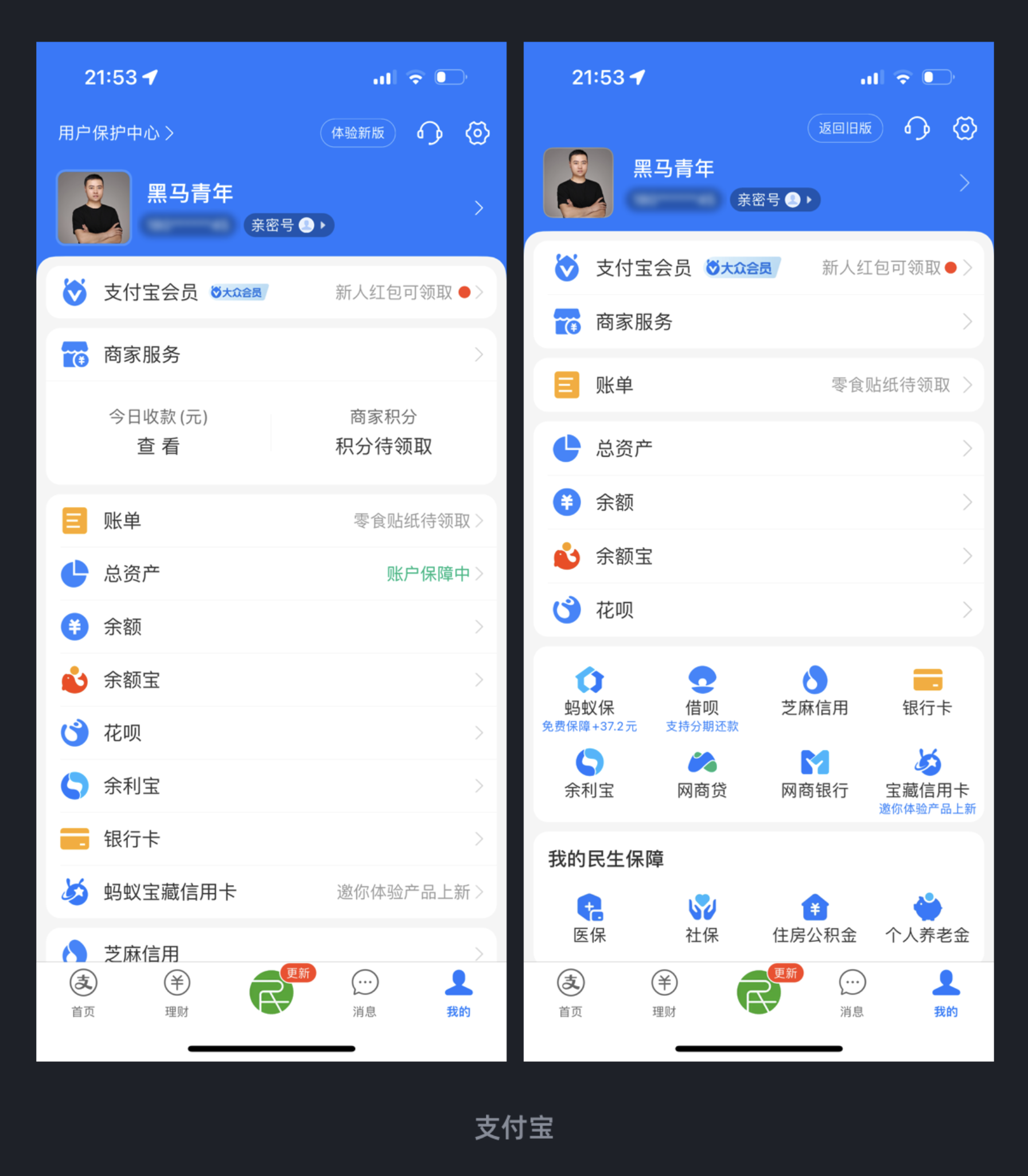 支付寶新版?zhèn)€人中心優(yōu)化布局,將原列表布局改為列表與宮格結(jié)合的形式,使更多功能在首屏曝光,既提高了版面利用率,也讓用戶操作更快捷。