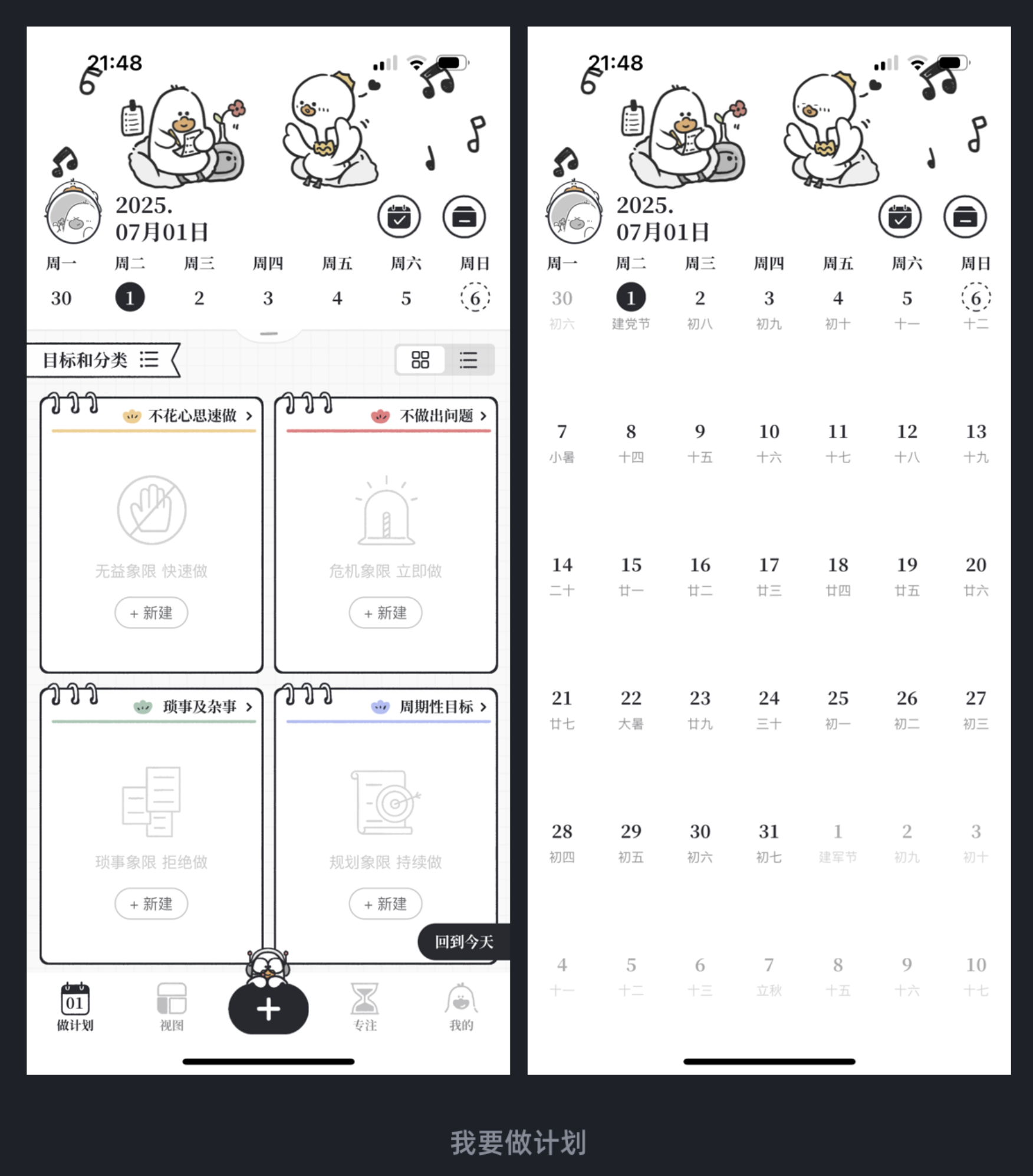 “我要做計(jì)劃” App 不僅日歷下拉展開(kāi) / 收起的交互便利,還在左右切換時(shí)模擬翻頁(yè)聲效,搭配涂鴉式設(shè)計(jì)風(fēng)格,增強(qiáng)了場(chǎng)景代入感。image.png