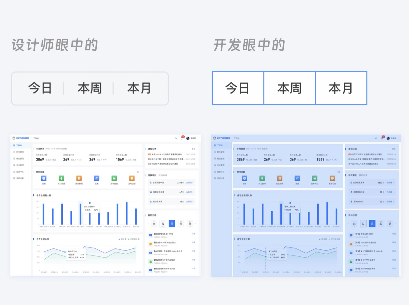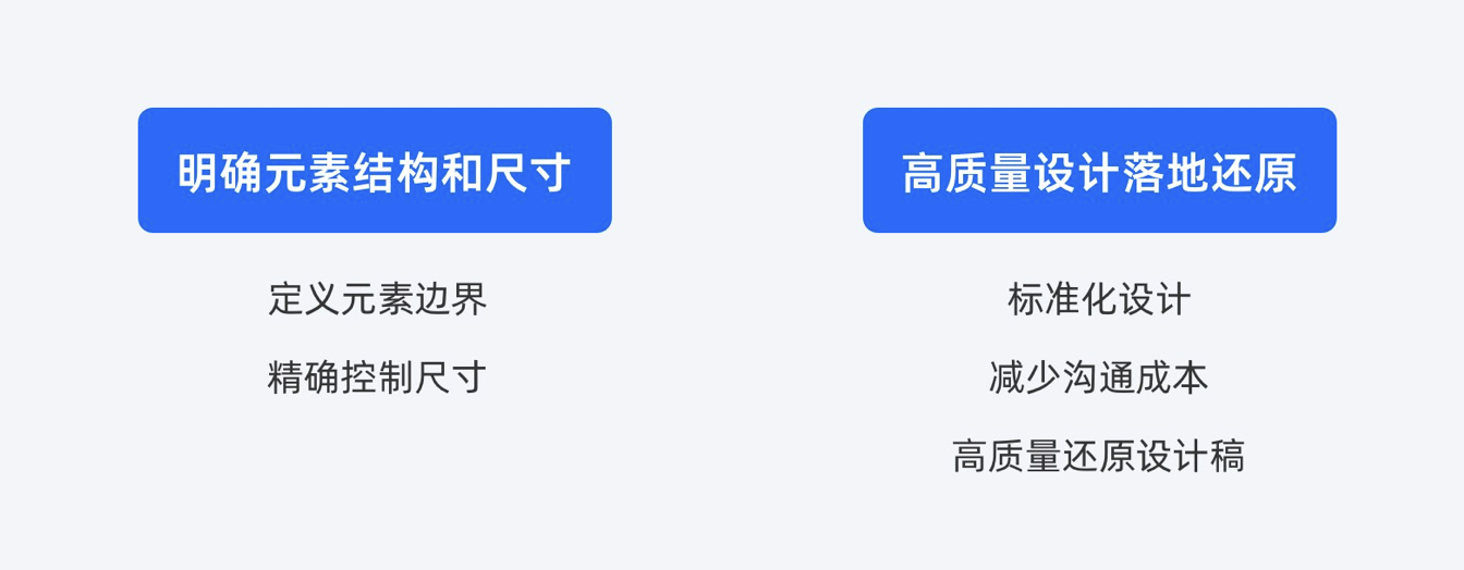 • 明確元素結(jié)構(gòu)和尺寸:清晰劃分元素各組成部分,便于還原設(shè)計稿中的元素結(jié)構(gòu)和尺寸。