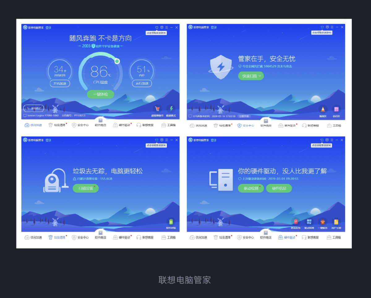 一致性設計能降低用戶學習成本、提升研發(fā)效率。布局一致性要保持統(tǒng)一結構,減少用戶對新結構的思考負擔。色彩一致性要求主色調統(tǒng)一傳遞品牌印象,功能性色彩形成固定規(guī)則。操作一致性是指同類功能操作邏輯統(tǒng)一,降低學習成本。反饋一致性要讓系統(tǒng)對同類操作的反饋方式統(tǒng)一,讓用戶與系統(tǒng) “溝通順暢”。文字一致性要求文字大小、顏色、風格統(tǒng)一,避免用戶因 “格式混亂” 產(chǎn)生誤解。聲音一致性要使操作提示音固定,強化用戶對操作結果的預判。聯(lián)想電腦管家的優(yōu)化加速、垃圾清理等模塊,在布局、文字、反饋方式上保持一致,既提升了用戶體驗,也降低了研發(fā)成本。