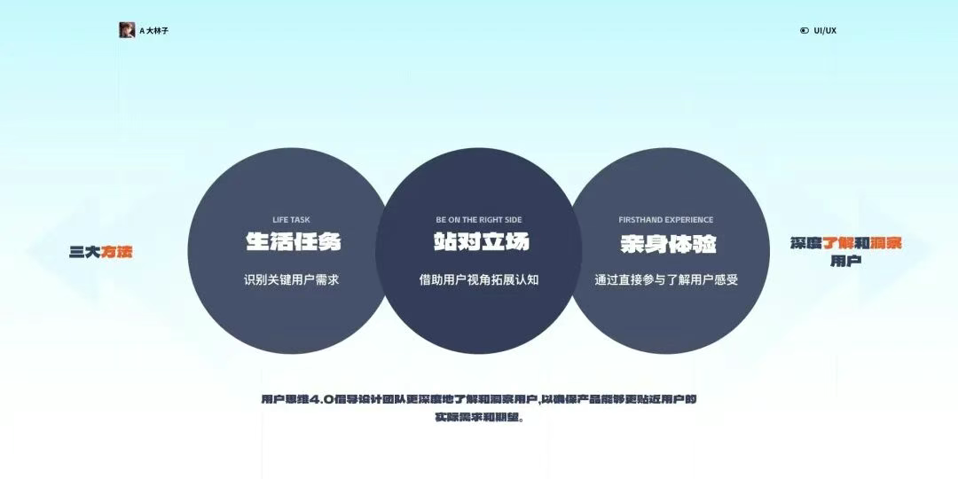 通過直接參與了解用戶感受 最直接的了解用戶的方式是親身體驗。通過設計團隊成員親自參與用戶使用產品的過程,能夠更深刻地感受用戶的需求和體驗。這一方法不僅提供了實際的用戶反饋,還能夠從設計者的角度直觀地感知用戶的情感和體驗,為產品的優(yōu)化提供實質性的依據。 通過這三大方法,用戶思維4.0倡導設計團隊更深度地了解和洞察用戶,以確保產品能夠更貼近用戶的實際需求和期望。