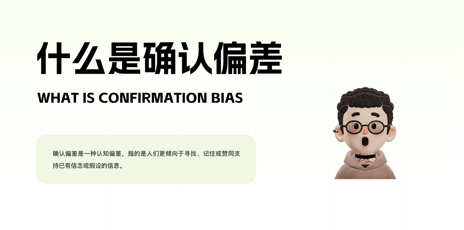 確認偏差是一種普遍的認知偏差,指用戶會更傾向于尋找、接受與自己原有信念、習慣或預期相符的信息,同時忽視甚至排斥相悖的信息。這種偏差源于人類大腦的信息處理機制 —— 為了應對海量信息,大腦會選擇性接收易理解、符合認知的內(nèi)容,以此降低思考成本,獲得認知上的舒適感。