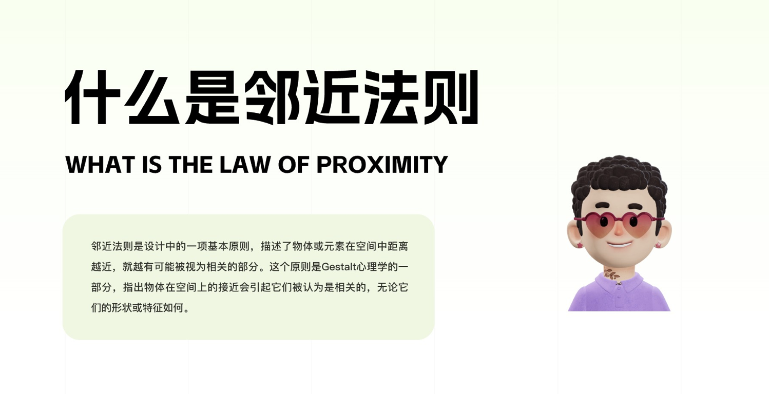 鄰近法則是格式塔心理學的核心原則之一,核心觀點是視覺上距離越近的元素,越容易被用戶視為一個整體、一組相關聯(lián)的內(nèi)容,無論這些元素的形狀、顏色、大小是否相同。這一原理源于人類的視覺感知習慣 —— 大腦會自動對視覺元素進行分組,而空間距離是最直觀的分組依據(jù),合理利用這一法則,能讓界面的信息邏輯更清晰,用戶無需思考就能理解元素之間的關聯(lián)。