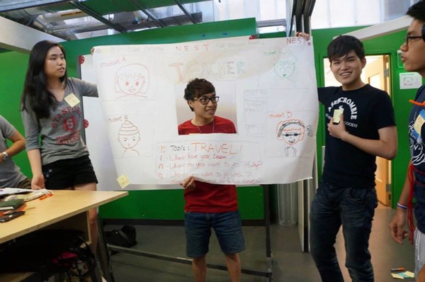 (利用各種材料做手工,展示給別的同學(xué)看,Photo by Tatsuhiro Ohtani ,VIA同事)