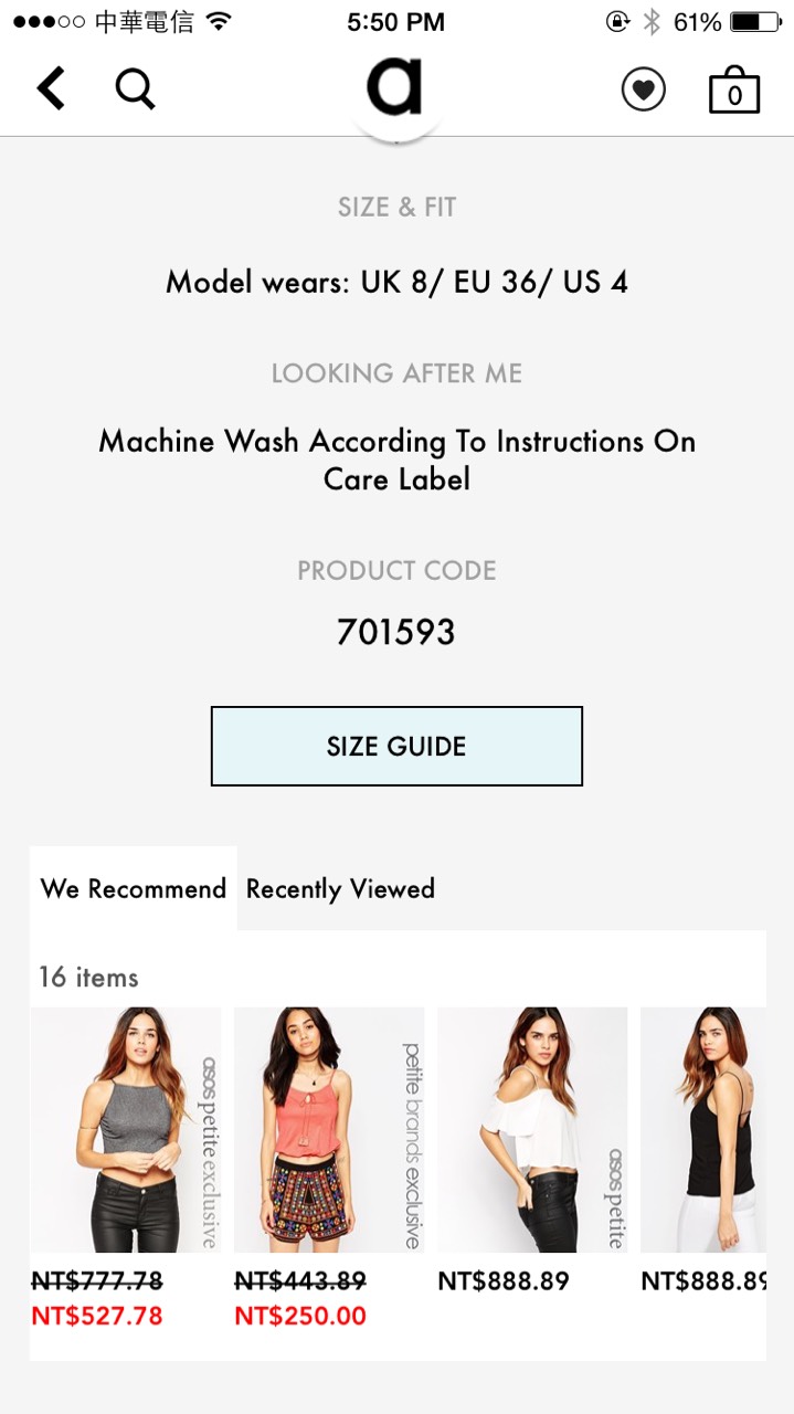針對(duì)產(chǎn)品的呈現(xiàn),有一個(gè)要訣就是讓使用者永遠(yuǎn)可以快速地掃是產(chǎn)品描述、一眼看到重點(diǎn)資訊(如:尺碼、價(jià)格等等)。而最重要的「購(gòu)買(mǎi)」鍵,更應(yīng)該不管使用者到哪裡,它都要夠醒目;另外,也應(yīng)該附上「放入愿望清單」的選項(xiàng),供用戶(hù)可以管理他想要購(gòu)買(mǎi)的內(nèi)容;因?yàn)楹芏嘤脩?hù)都是利用通勤等零碎時(shí)間使用應(yīng)用,通常這些時(shí)間并不夠支撐用戶(hù)完成一個(gè)購(gòu)物的流程,所以有欲望清單讓他可以先選好放著,是一個(gè)較佳的設(shè)計(jì)。