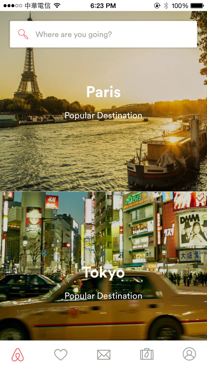 首先,品牌行銷(xiāo)必須要更加微型,例如:Airbnb 的品牌 Logo 就以一個(gè)不張揚(yáng)的方式嵌在應(yīng)用內(nèi)。這是因?yàn)榇蠹視?huì)來(lái)使用你的 App,就已經(jīng)知道你的品牌,因此沒(méi)必要讓品牌 Logo 重複出現(xiàn)在螢?zāi)恢小?