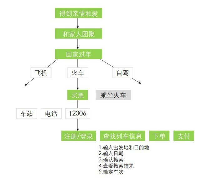 比如“訂票”是過年回家這個目標的任務,但是卻是12306注冊登錄、搜索車票、預定、支付任務的目標。