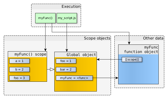 所以,當myFunc被執(zhí)行的時候,對象之間的關(guān)系如下圖所示。