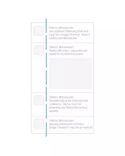 從產(chǎn)品設(shè)計的角度上來看,Twitter 的時間線設(shè)計就是一個很好的案例,左側(cè)的頭像和右側(cè)的推文共同塑造出縫隙中軸線的感覺。