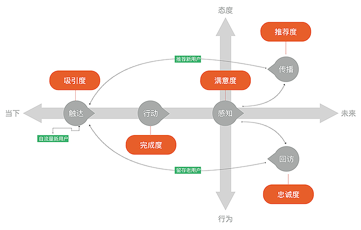 以上這3點(diǎn)是我們?cè)O(shè)計(jì)人員在工作中需要看數(shù)據(jù)的原因。但在設(shè)計(jì)工作中,數(shù)據(jù)使用主要關(guān)注2個(gè)方面,一個(gè)是看什么數(shù)據(jù),另一個(gè)是如何使用數(shù)據(jù)。設(shè)計(jì)師看什么數(shù)據(jù),我們根據(jù)用戶(hù)體驗(yàn)設(shè)計(jì)目標(biāo)與產(chǎn)品生命周期,形成了用戶(hù)體驗(yàn)的“5度”模型,即吸引度、完成度、滿(mǎn)意度、忠誠(chéng)度、推薦度。不同產(chǎn)品的5度具體指標(biāo)要根據(jù)產(chǎn)品實(shí)際情況來(lái)定義,今天我就不展開(kāi)來(lái)講了,詳細(xì)可以查看阿里UED博客或《U一點(diǎn)料》