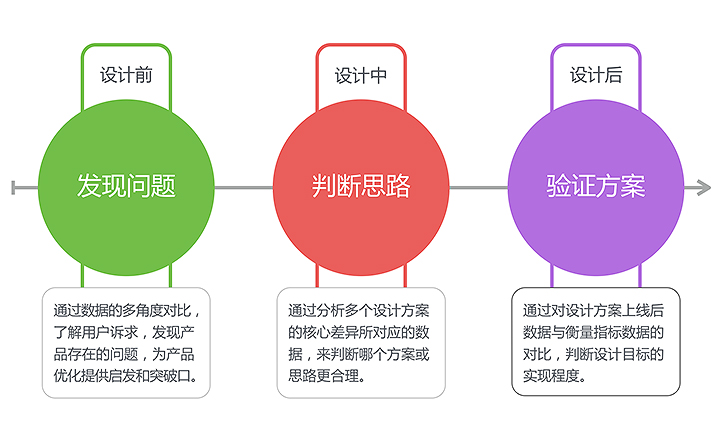 (3)設(shè)計(jì)后用于驗(yàn)證設(shè)計(jì) 通過(guò)計(jì)算上線(xiàn)后的產(chǎn)品數(shù)據(jù),對(duì)比設(shè)計(jì)前設(shè)定的指標(biāo)數(shù)據(jù),判斷設(shè)計(jì)目標(biāo)的實(shí)現(xiàn)程度。