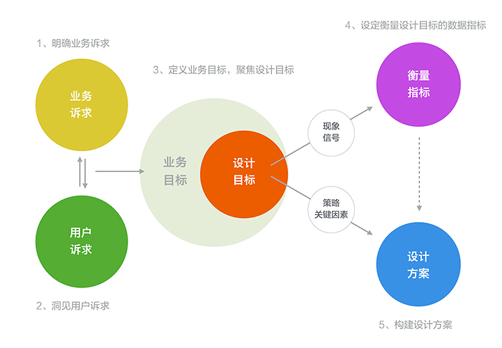 業(yè)務(wù)協(xié)同其實(shí)大家都不難理解,所有UED都在做這樣的事情,保質(zhì)保量的完成業(yè)務(wù)需求,不斷迭代產(chǎn)品進(jìn)度;設(shè)計(jì)增值就有一些難度了,首先要搞清楚如何論證設(shè)計(jì)的價(jià)值,才能說(shuō)出增值有多少,所以針對(duì)這個(gè)問(wèn)題我們打造了頁(yè)面數(shù)據(jù)統(tǒng)計(jì)工具,方便設(shè)計(jì)師、開(kāi)發(fā)、運(yùn)營(yíng)、PD低成本的查看頁(yè)面上線(xiàn)后的數(shù)據(jù)反饋,及時(shí)了解設(shè)計(jì)的結(jié)果。設(shè)計(jì)師要做到增值,我們會(huì)推行《五導(dǎo)家》,常規(guī)來(lái)說(shuō),設(shè)計(jì)師一般接到設(shè)計(jì)需求就進(jìn)入設(shè)計(jì)執(zhí)行階段,中間思考過(guò)程是黑盒,即每次的設(shè)計(jì)都是發(fā)揮不同設(shè)計(jì)師個(gè)體價(jià)值,專(zhuān)業(yè)強(qiáng)的設(shè)計(jì)師輸出作品好一些,普通設(shè)計(jì)師輸出結(jié)果不穩(wěn)定,UED團(tuán)隊(duì)整體輸出品質(zhì)不可預(yù)測(cè),而《五導(dǎo)家》方法就是把設(shè)計(jì)過(guò)程的黑盒變成白盒的過(guò)程,是設(shè)計(jì)師常用方法抽象的5步過(guò)程,是設(shè)計(jì)工作的ThinkFlow。