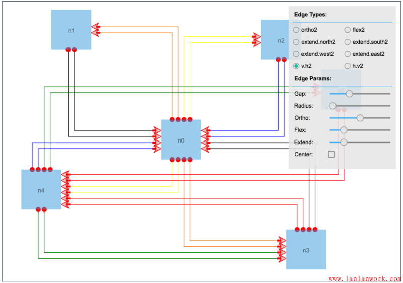 對(duì)于連線 Edge,HT 還提供了自定義走向的擴(kuò)展機(jī)制,并提供了相應(yīng)的預(yù)制擴(kuò)展連線類(lèi)型插件,參見(jiàn)《HT for Web 連線類(lèi)型手冊(cè)》http://www.hightopo.com/guide...