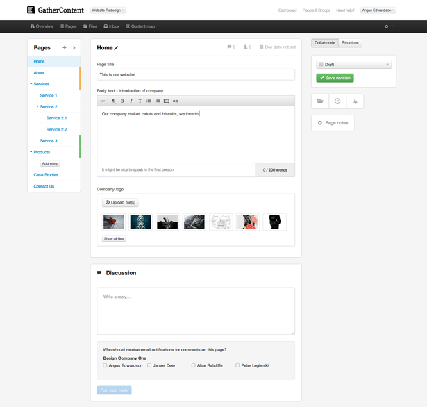 Gather Content 是一款很棒的內(nèi)容編輯工具,你可以參考他們?cè)谛畔⒐芾怼⒔M織和呈現(xiàn)方面的一些做法。