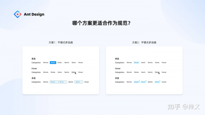 以我們開篇第四個問題提到的組件「平鋪式多選器」為例,我們到底該選哪個方案作為規(guī)范納入設計系統(tǒng)當中呢?