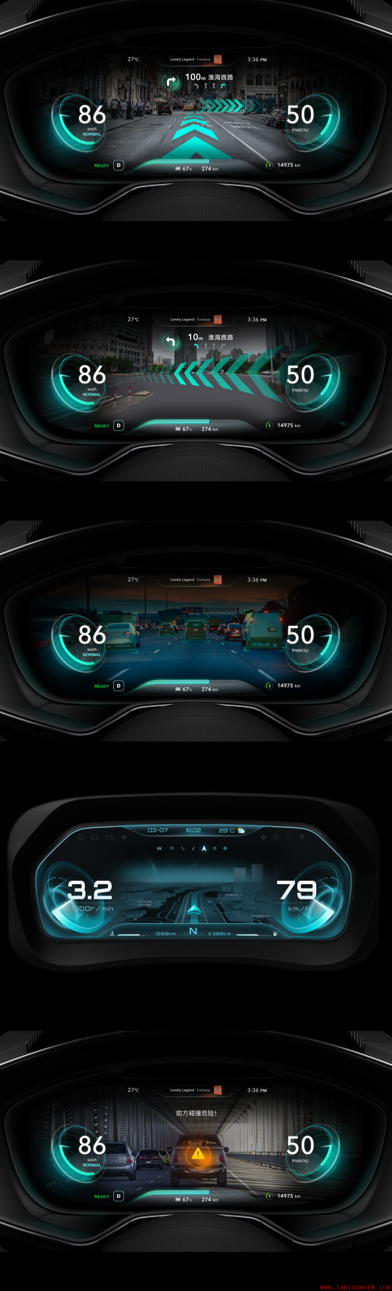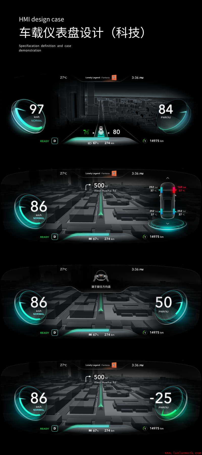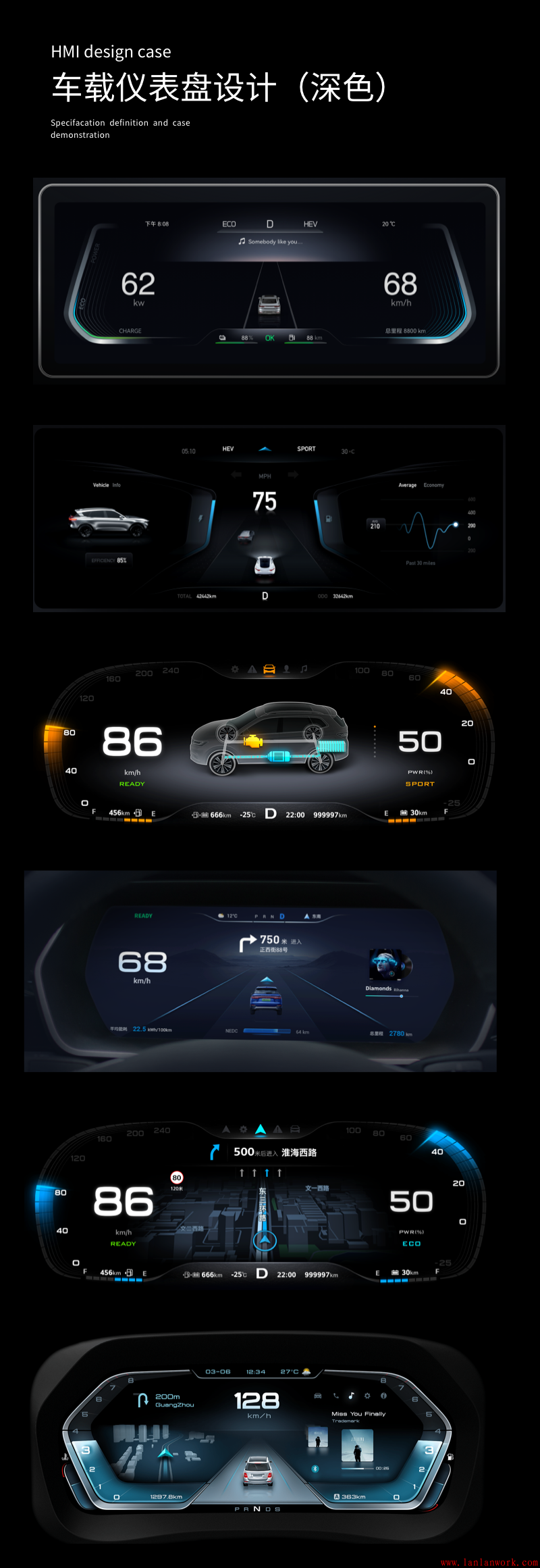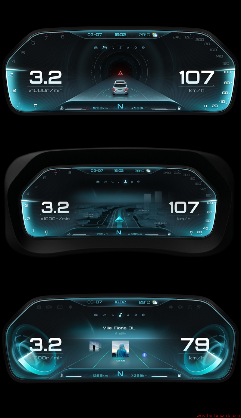 電動汽車行業(yè)飛速發(fā)展,智能AI和人際互聯(lián)等人車交互概念也跟著興起,對于中控臺的需求和功能復(fù)雜度也跟著越發(fā)精細起來,全液晶顯示和HUD已經(jīng)成了基本操作,炫酷、科技感爆棚的HMI設(shè)計成為標配。