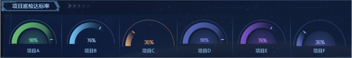 巡檢達(dá)標(biāo)率模塊,信息承載維度較為單一,僅以項(xiàng)目維度為分類,展示各個(gè)項(xiàng)目的達(dá)標(biāo)率情況。