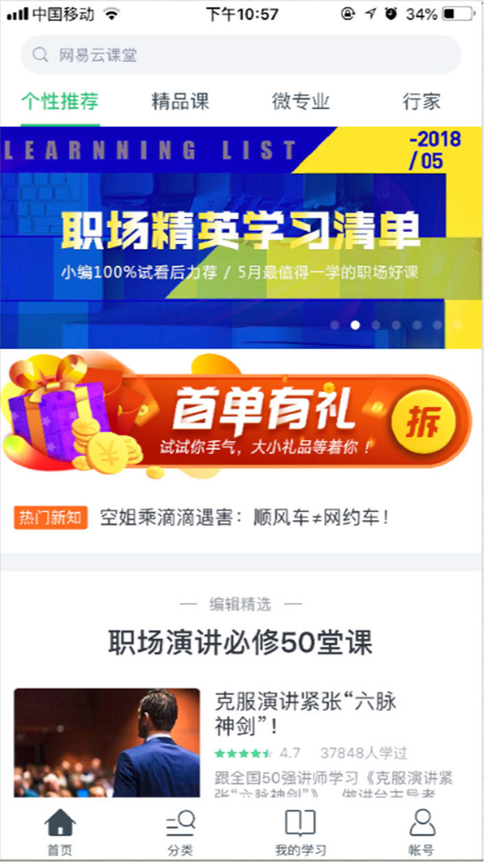 2.在交互上采用左右滑動(dòng)的方式,保證用戶可以快速切換不同的內(nèi)容,精細(xì)化 的有助于幫助沒(méi)有明確目標(biāo)的用戶快速找到感興趣的課程;